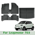 Leapmotor T03 Accessories Mud flaps Dashboard Cover Frunk Armrest Wind deflectors Central Storage Box LHD Foor Mats TPE Floor Mats Trunk Storage Box TPE Boot Liner TPE Trunk Mat Trunk Lip Cover Leather Seat Cover Tail Wing Spoiler Charging Port Rain Cover Wheels Hub Caps Door Handle Cover Doors Armrest Cover Infotainment Screen Protector Tempered glass screen protector Armrest box (2024 2025 2026) Stainless Steel Door Sill Anti-Slip Rubber Pads Black logo/emblem Steering Wheel Cover Windshield Sunshade Leather Key Cover Zinc + Leather Key Cover